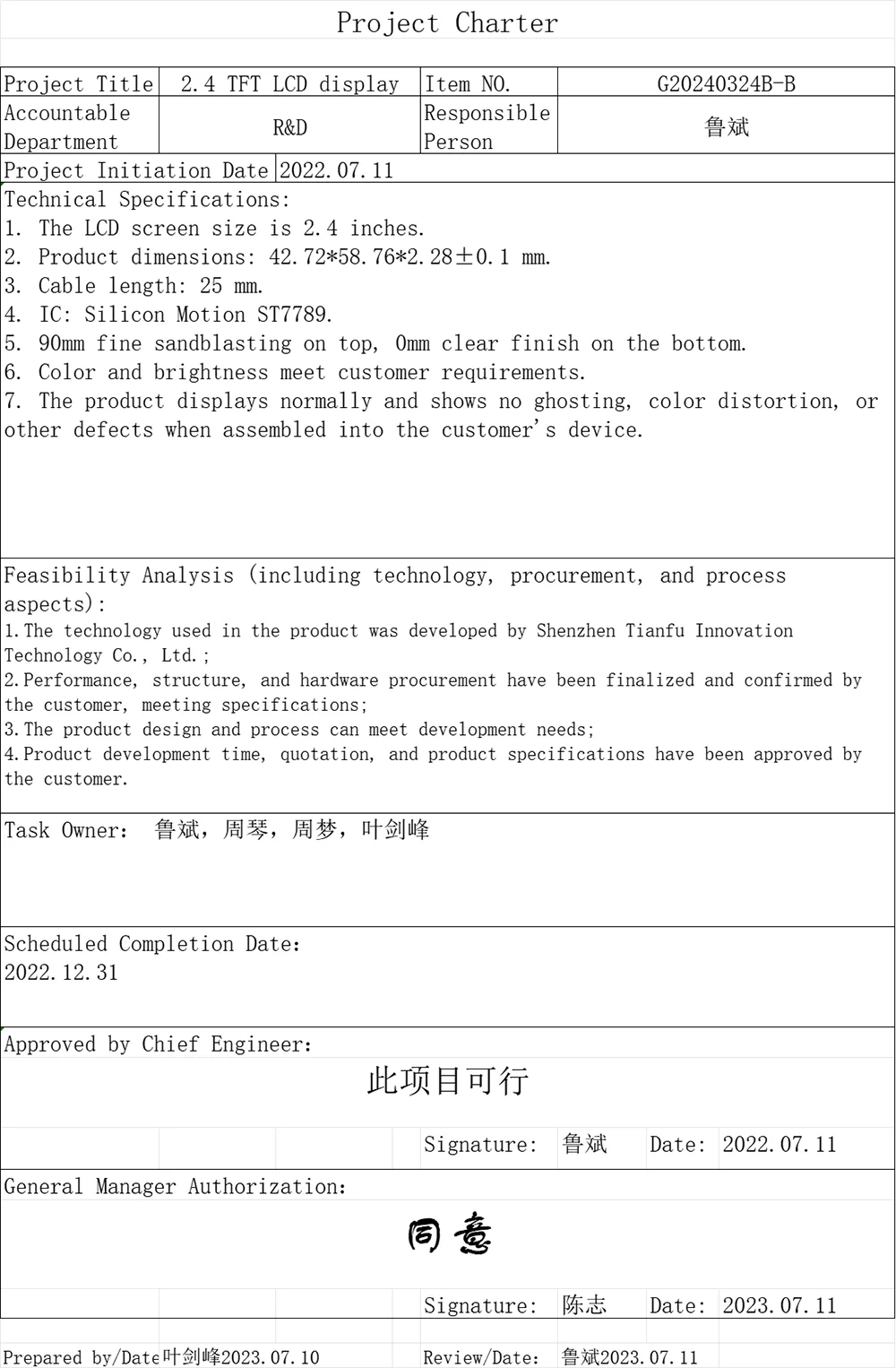 Mint régóta működő LCD beszállító és gyártó Kínában, a TF mindig is a kiváló minőségű termékek előállítására összpontosított. A 2,4' Wide Temp TN TFT LCD képernyő modul kompatibilis a hagyományos mikrokontrollerekkel. Tipikus 280-300 cd/m² fényerővel és 200:1 kontrasztaránnyal büszkélkedhet.
